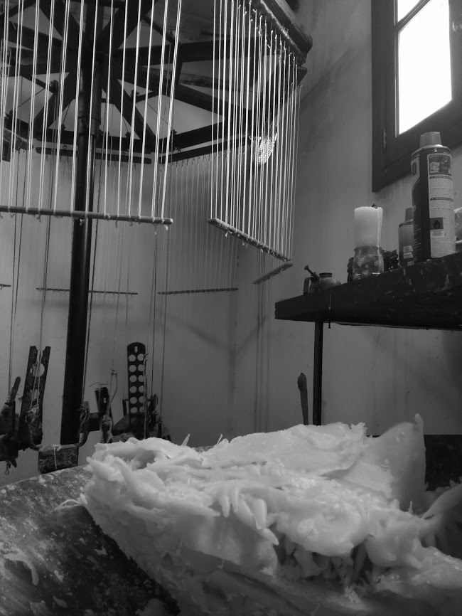 cera, contrapesos y botellas